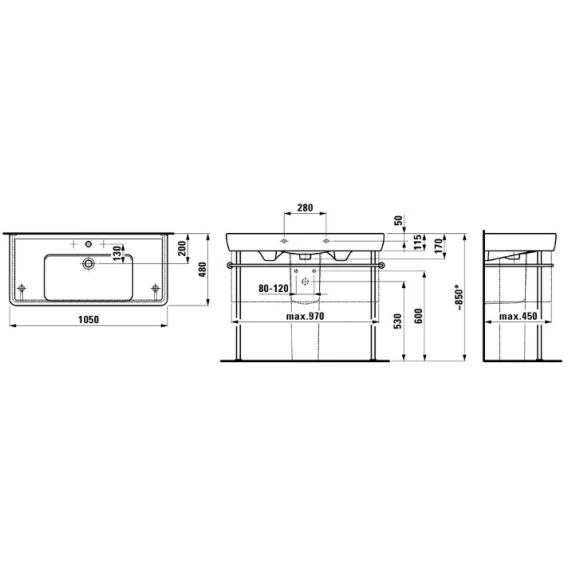 Раковина 105 см Laufen Pro A 8.1395.8.000.104.1