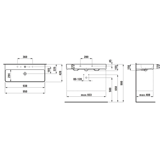 Раковина 95x42 см Laufen Val 8.1028.7.000.104.1