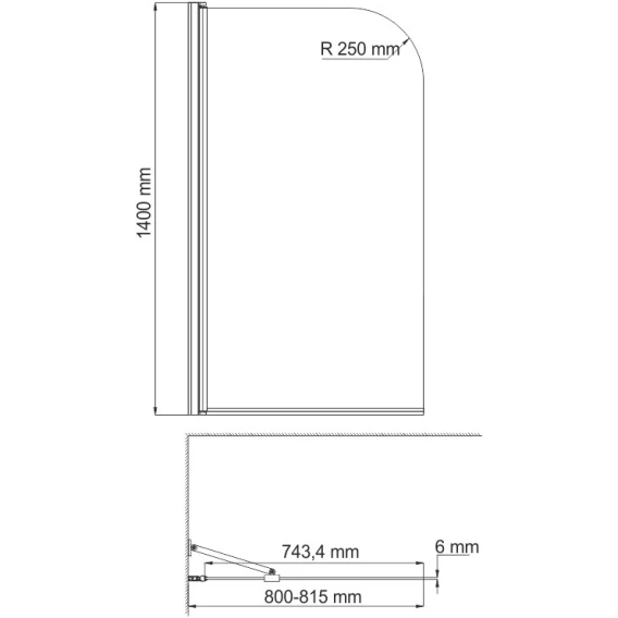 Шторка для ванны 80 см WasserKRAFT Leine 35P01-80W Fixed прозрачное