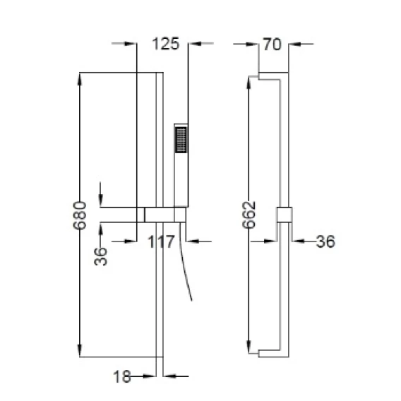 Душевой шланг, Душевая лейка, Держатель для душевой лейки, Штанга душевая