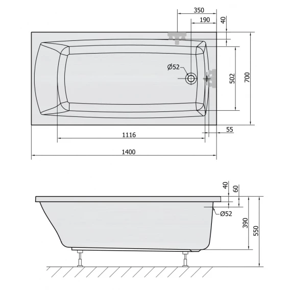 Акриловая ванна 140x70 см Alpen Diana AVP0041