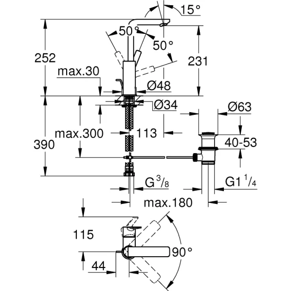 Смеситель для раковины с донным клапаном Grohe Lineare 23296001