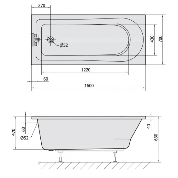 Акриловая ванна 160x70 см Alpen Lisa 86111