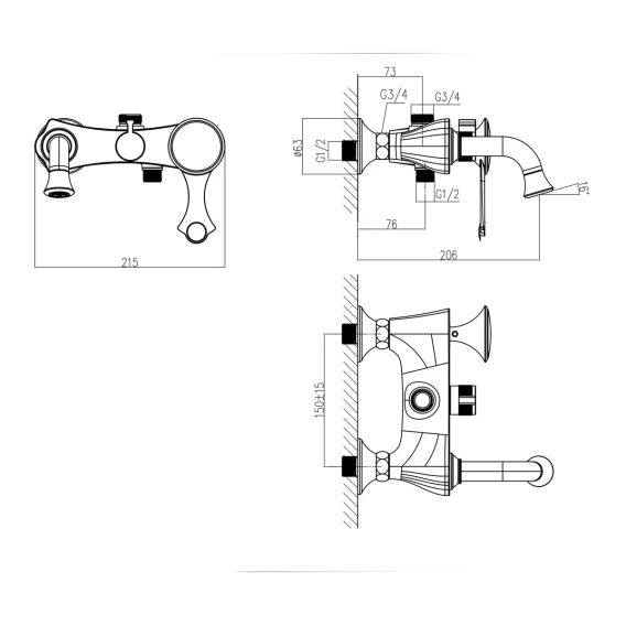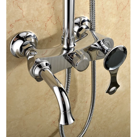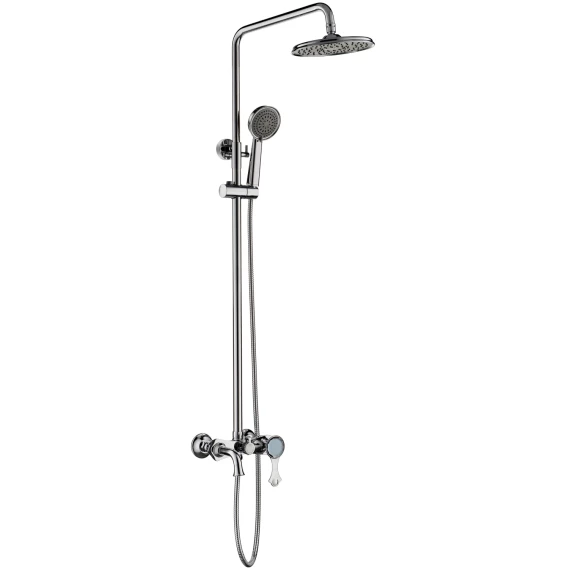 Аэратор, Металлическая розетка, Эксцентрики, Душевой шланг, Душевая лейка, Держатель для душевой лейки, Верхний душ, Смеситель, Кронштейн, Штанга душевая