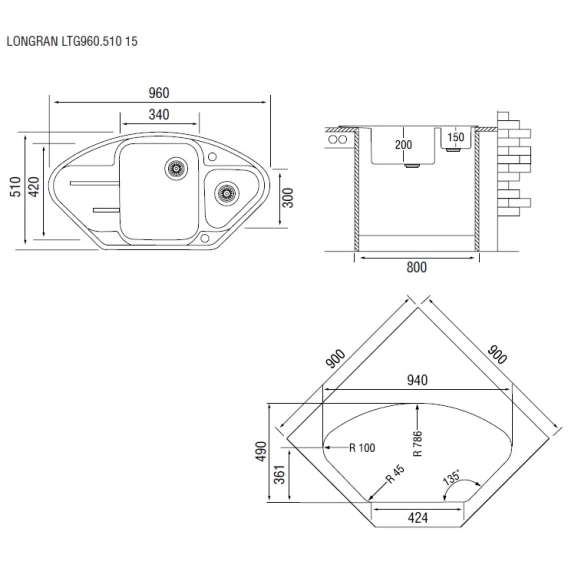 Кухонная мойка арена Longran Lotus LTG960.510 15 - 47