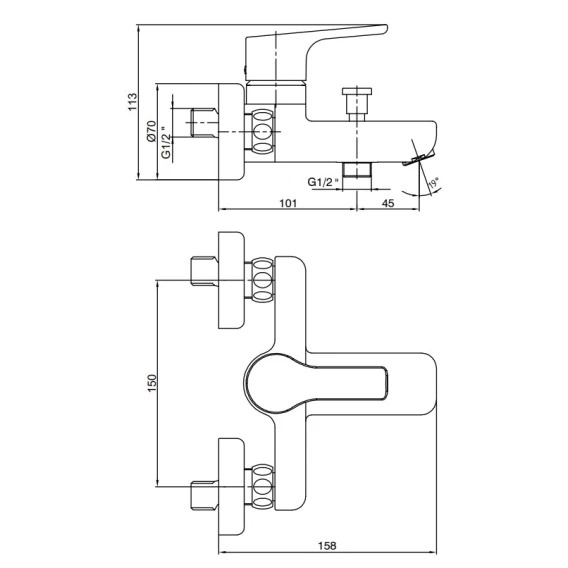 Смеситель для ванны E.C.A Luna 102802450EX