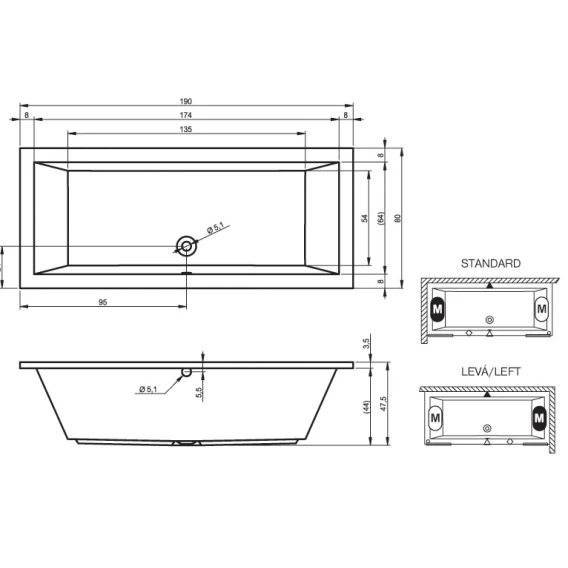 Акриловая ванна 190x100 см 1Marka Korsika 01кр1910