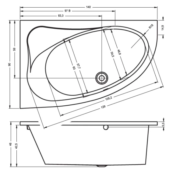 Акриловая ванна 140x90 см Riho Lyra R B019001005