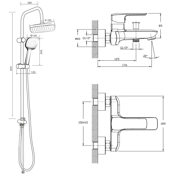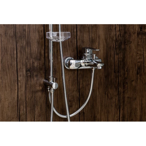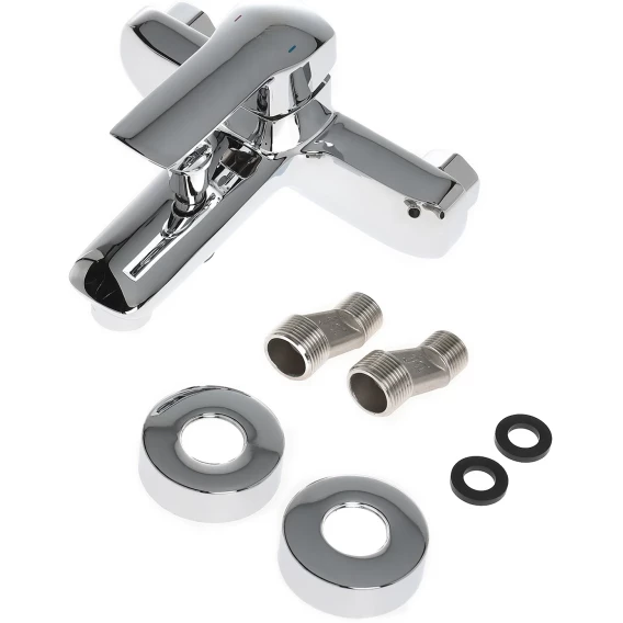 Аэратор, Металлическая розетка, Эксцентрики, Душевой шланг, Душевая лейка, Держатель для душевой лейки, Верхний душ, Смеситель, Кронштейн, Мыльница, Штанга душевая
