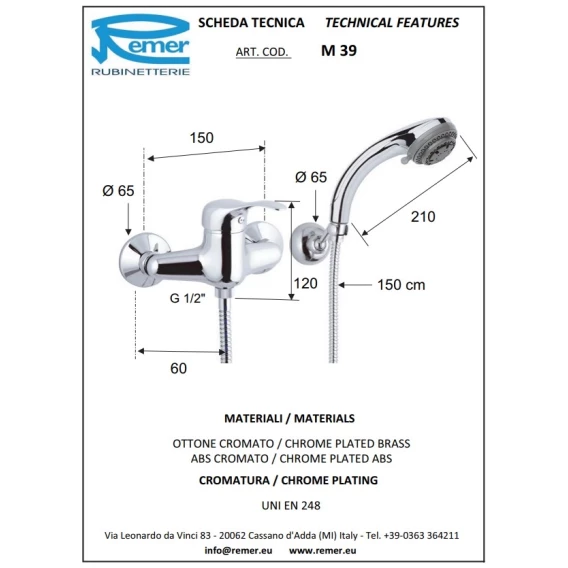 Металлическая розетка, Эксцентрики, Душевой шланг, Душевая лейка, Держатель для душевой лейки