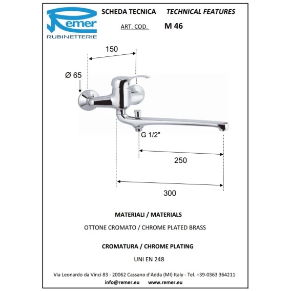 Смеситель для биде с донным клапаном Remer Minimal N20