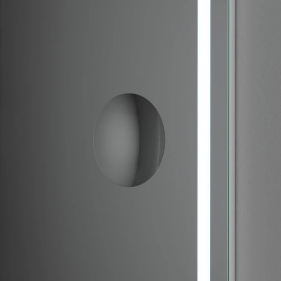• Скрытый механический выключатель сохраняет эстетическую целостность дизайна зеркала, а также гарантирует отсутствие отпечатков пальцев на зеркальном полотне. Зеркальное полотно премиального качества производства Бельгии.