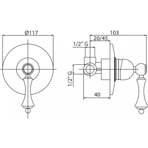Встраиваемый смеситель для душа бронза, ручка белая Cezares Margot MARGOT-DIM-02-Bi