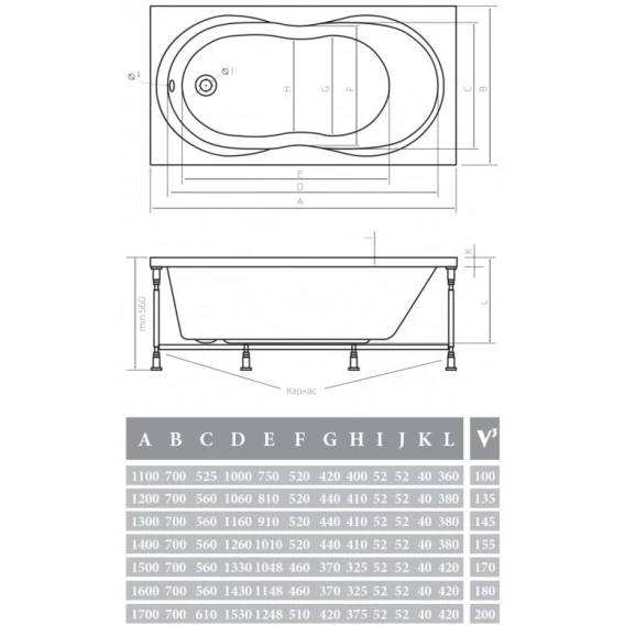 Акриловая ванна 160x70x42 см Alpen Mars AVP0015