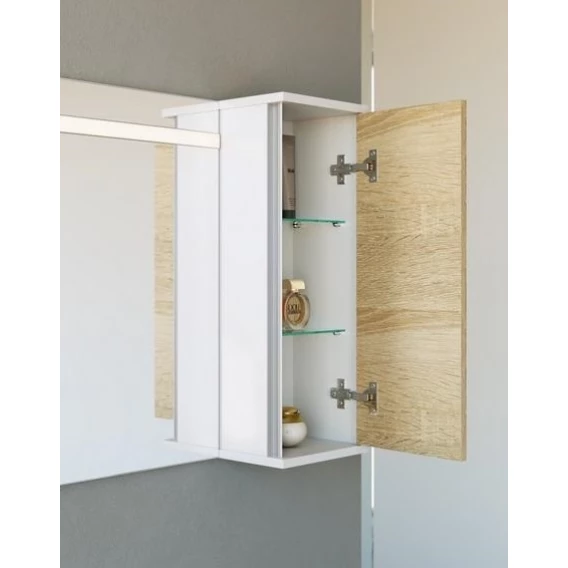 Зеркальный шкаф 90x65 см с подсветкой белый глянец/дуб сонома Aqwella 5 Stars Miami Mai.02.09