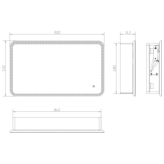 Крепление, Полочка, LED подсветка, Розетка, Сенсорный выключатель