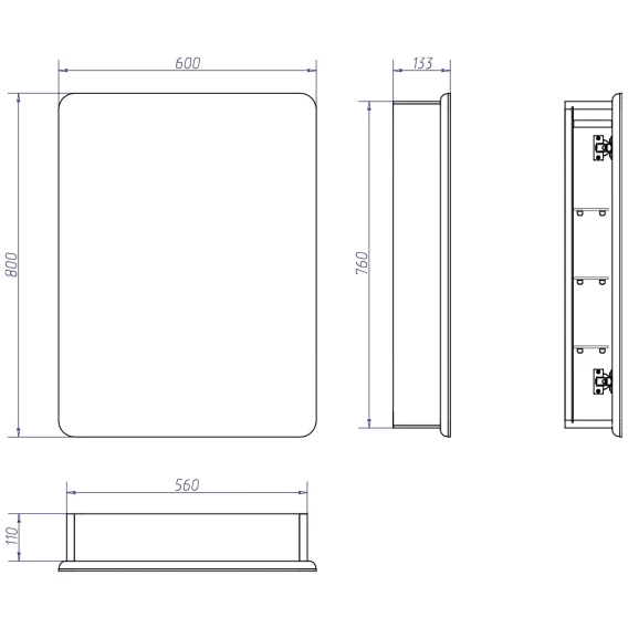 Крепление, Механизм доводчика, Полочка, LED подсветка, Розетка, Сенсорный выключатель