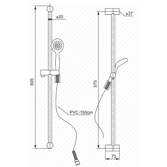 Крепление, Душевой шланг, Душевая лейка, Держатель для душевой лейки, Штанга душевая