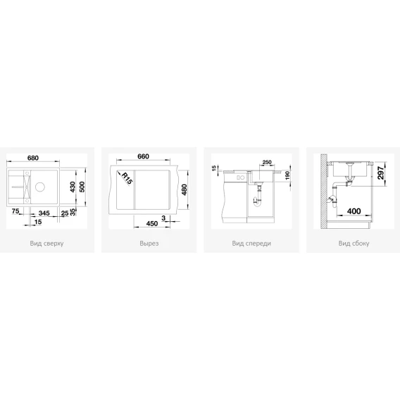 • Возможна установка под столешницу