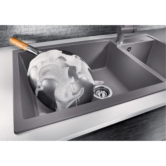 • Необычайно большая основная чаша и просторная дополнительная чаша подходят для мытья посуды больших размеров