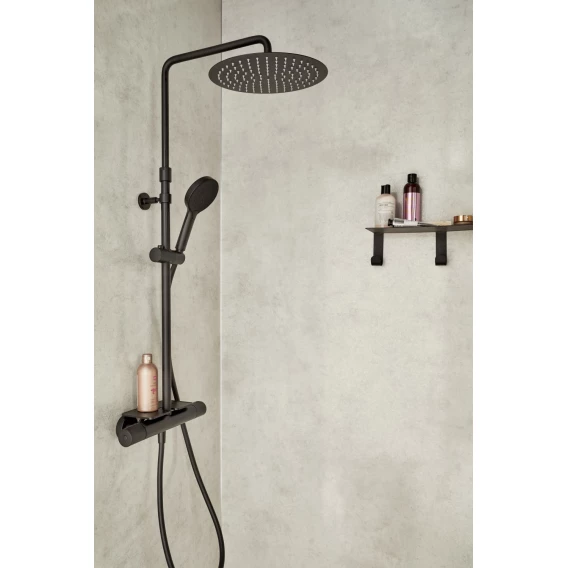 Металлическая розетка, Эксцентрики, Душевой шланг, Душевая лейка, Держатель для душевой лейки, Полочка, Верхний душ, Кронштейн, Штанга душевая, Термостат