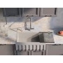 • Два разных стиля видимой фронтальной стенки. С одной стороны мойки — стенка плоская, с другой — на стенке расположены вертикальные каннелюры (элементы, выполненные в виде направленного вертикального углубления). Видимая фронтальная стенка может быть расположена как вровень с фасадами кухонного гарнитура, так и выступать вперед относительно фасадов.