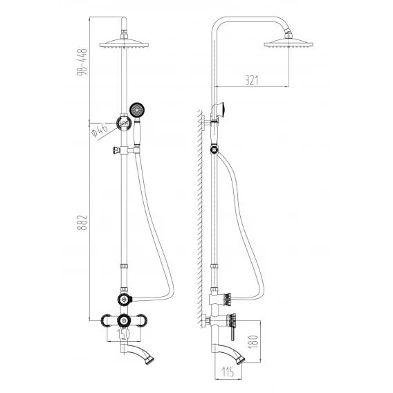 Аэратор, Металлическая розетка, Эксцентрики, Душевой шланг, Душевая лейка, Держатель для душевой лейки, Верхний душ, Смеситель, Кронштейн, Штанга душевая