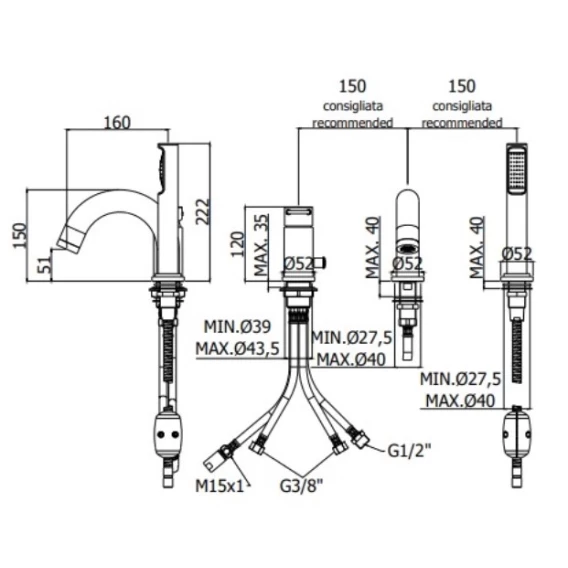 Крепление, Аэратор, Гибкая подводка, Душевой шланг, Душевая лейка