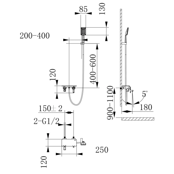 Аэратор, Металлическая розетка, Эксцентрики, Душевой шланг, Душевая лейка, Держатель для душевой лейки, Полочка