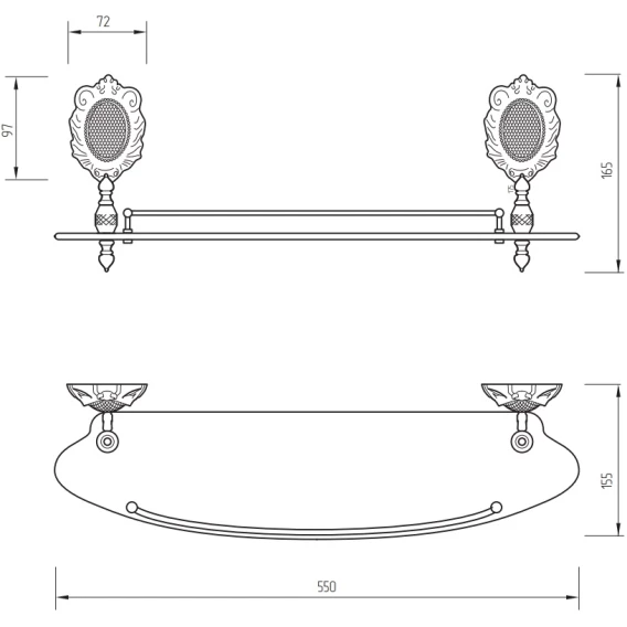 Полка стеклянная 55 см Migliore Cleopatra ML.CLE-60.720.DO