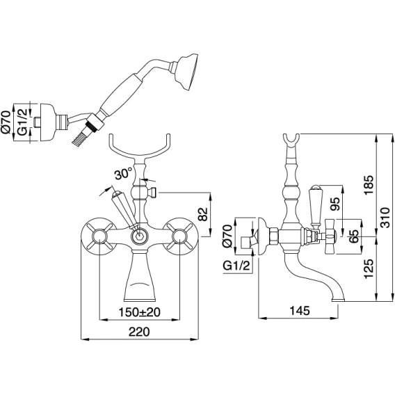 Металлическая розетка, Эксцентрики, Душевой шланг, Душевая лейка, Держатель для душевой лейки