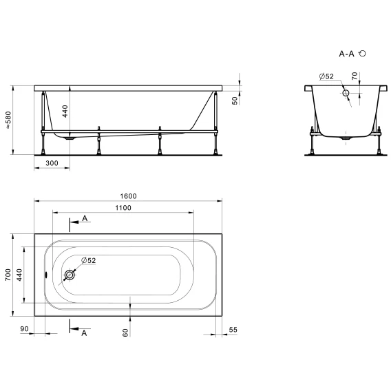 Крепление, Металлический каркас, Слив-перелив, Ножки