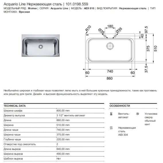 Кухонная мойка Franke Acquario Line AEX 610 полированная сталь 101.0198.559