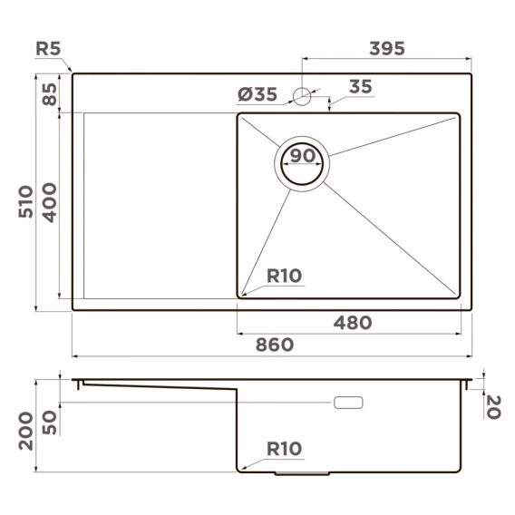 Кухонная мойка Omoikiri Akisame 86-IN-R Side нержавеющая сталь 4997042