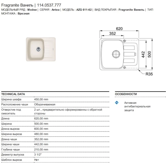 Кухонная мойка Franke Antea AZG 611-62 ваниль 114.0537.777