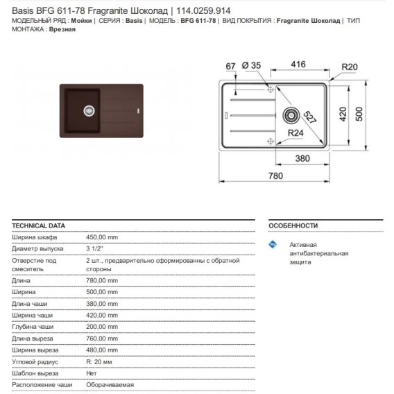 Кухонная мойка Franke Basis BFG 611 шоколад 114.0259.914
