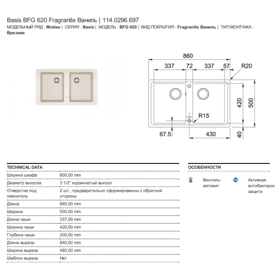 Кухонная мойка Franke Basis BFG 620 ваниль 114.0296.697