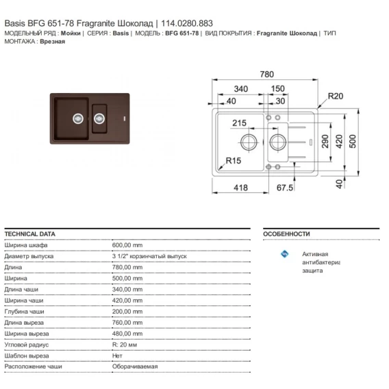Кухонная мойка Franke Basis BFG 651-78 шоколад 114.0280.883