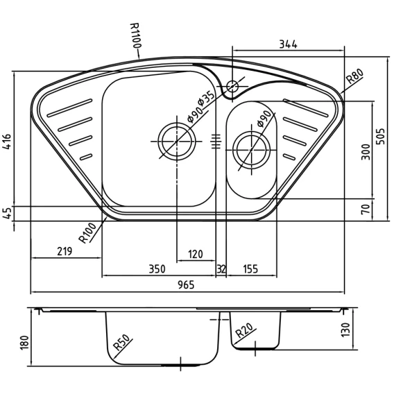 Кухонная мойка полированная сталь IDDIS Strit STR96PCI77