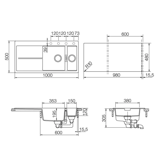 • сифон с возможностью подключения посудомоечной или стиральной машины