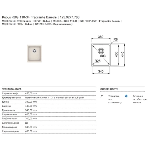 Кухонная мойка Franke Kubus KBG 110-34 ваниль 125.0277.788