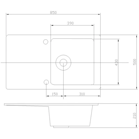 Намеченных отверстий для смесителя