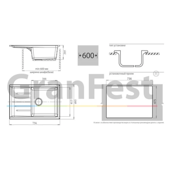 Кухонная мойка серый Акватон Паола 1A714032PA230