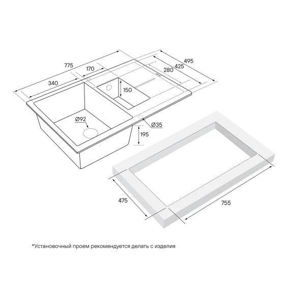 Кухонная мойка Paulmark Feste черный металлик PM237850-BLM