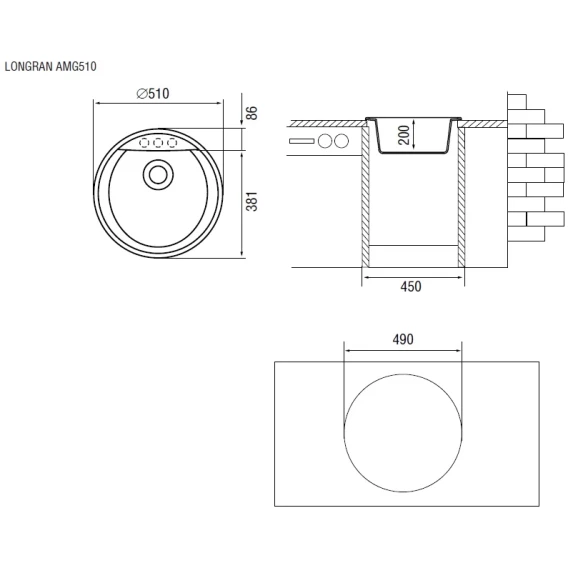 Кухонная мойка лава Longran Amanda AMG510 - 40