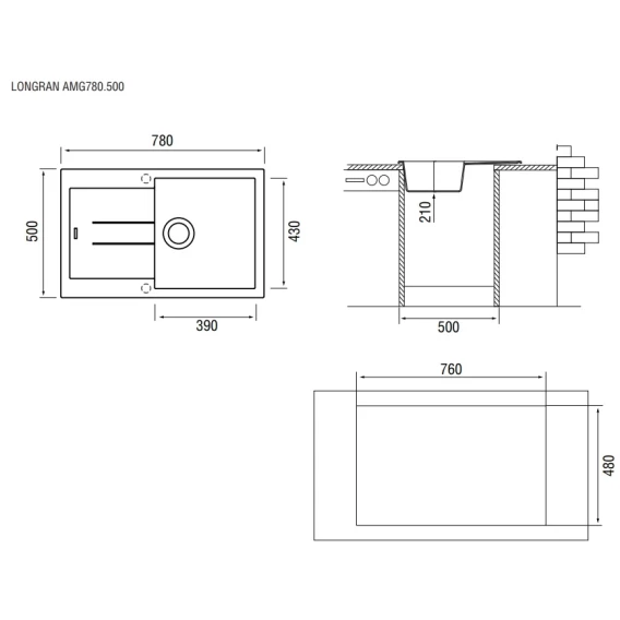 Кухонная мойка крома Longran Amanda AMG780.500 - 49