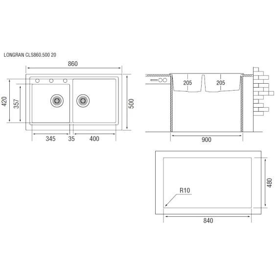 Кухонная мойка лава Longran Classic CLS860.500 20 - 40