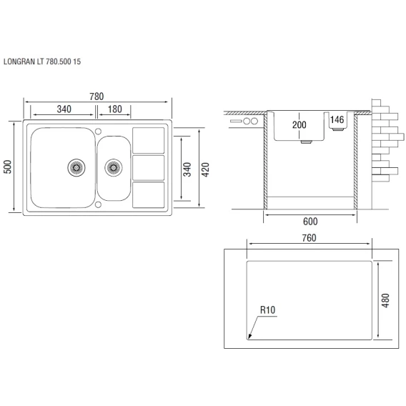 Кухонная мойка декоративная сталь Longran Lotus LTL780.500 15XT8P