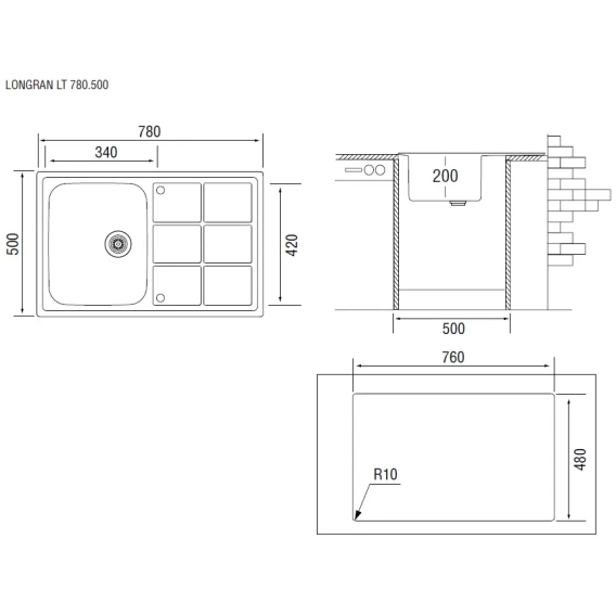 Кухонная мойка полированная сталь Longran Lotus LTP780.500 15XT8P