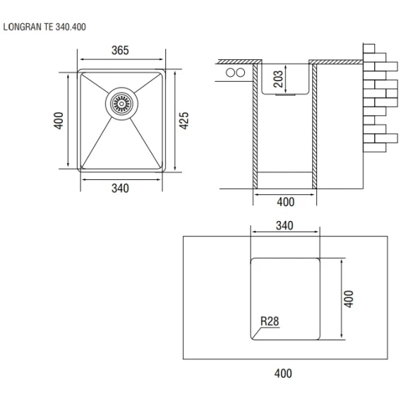 Кухонная мойка полированная сталь Longran Techno TEP340.400 -GT10P